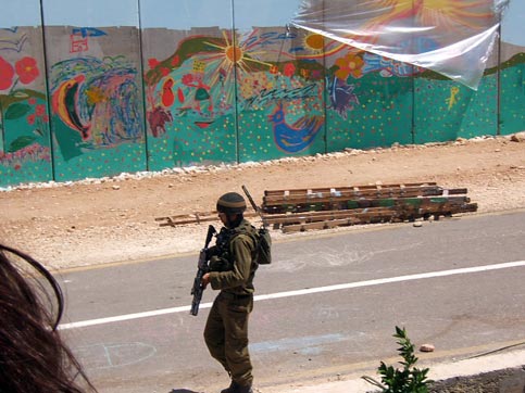He also made the ceremonial stop at the Western Wall to pray and stuff a private prayer in a crack in the wall. (The prayer was quickly stolen, apparently by a Jewish seminary student. It was later printed in an Israeli newspaper, a serious invasion of the visitor’s privacy. ) Obama made no stops in the West Bank except for his meeting with Abbas and Fayad. He was not exposed to the numerous checkpoints on the ground, but he could hardly escape seeing the “security wall” that cuts into Palestinan territory and surrounds major Palestinian cities.