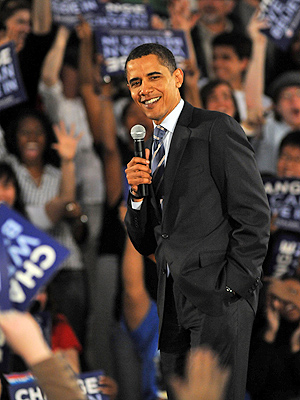 The picture above, of Barack Obama, was taken by Joe Raymond, of he Associated Press, during a rally at South Bend Washington High School, Wednesday April 9, 2008 in South Bend, Ind. It was published in the Los Angeles Times, April 10, 2008.