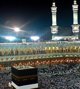 Picture above of a Palestinian family is by Connie Baker. It was taken at a back entrance to Bethlehem. The picture from Mecca is from the Los Angeles Times.