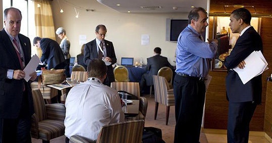 The picture above is one of a series of candid photos supplied by http://www.Whitehouse.gov. It was taken when the President was in Strasborg, France, May 4, 2009. The president is at right talking with staff aide David Alexrod. Tom Donilon, now the NSA, is at the far left.