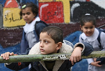 The picture at the top of this page appeared on the web site Worldpress.org, on February 4, 2010, The Palestinian schoolchildren in the picture are shown outside their Beit Lahia UNRWA school in in the northern Gaza Strip before the UNRWA center and several schools were destroyed by Israeli bombing during Israel’s three-week invasion of Gaza in 2008-2009.