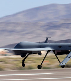What is a drone? The picture at right is that of a MQ-1B Predator unmanned aircraft system, called “a drone” for short. The MQ-18 is shown taking off for a training mission at Creech Air Force Base, Nevada.