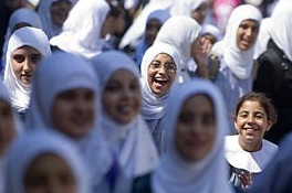 The picture of Dennis Ross is from the Ma’an News Agency. The girls leaving an UNRWA school above, are in Gaza. They are not celebrating Ross’ resignation. They are just happy to be in the sunshine. Of course, every morning they are happy to have arrived safely at school.