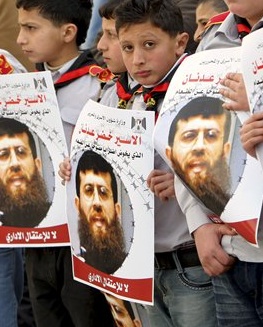 The picture at the top, taken in Jenin, is by AP photographer Mohammed Ballas. The picture of Khader Adnan was published February 11, 2012, on The Ma’an News Agency web site. The Agency does not indicate the date on which the picture was taken. The picture of Musa Adnan is by Dylan Collins. It is from the Palestine Monitor.