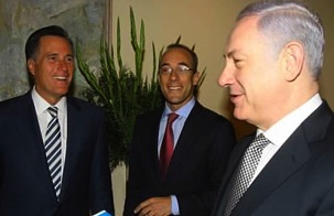 The picture of Romney, Dan Senor and Prime Minister Netanyahu is from The Jewish Tablet. The videos are from Mother Jones.