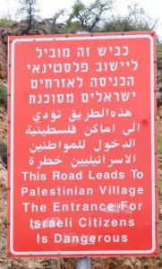 The red signs at every turn off into the West Bank, warning that the Israeli government forbids entry and that entry is dangerous, have not ceased, in a whole variety of selfish and unselfish ways, to alarm me. Quite to the contrary, I am only beginning to see, learning how to look, and my sense of alarm is off the charts.