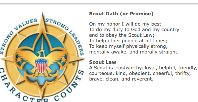 A Boy Scout pledges to follow that Scout Law, words which have been memorized and embraced since Scouting began in 1908. A Scout is expected to always be “trustworthy, loyal, helpful, friendly, courteous, kind, obedient, cheerful, thrifty, brave, clean, and reverent”.